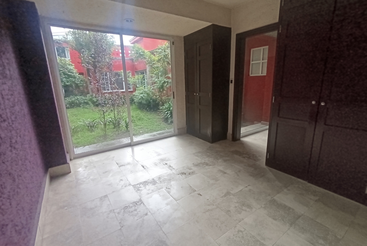 Además, cuenta con un amplio jardín que conecta con una casa de visitas ubicada en la parte posterior, de dos niveles y con baño propio, área de lavado y cuarto de servicio con baño.