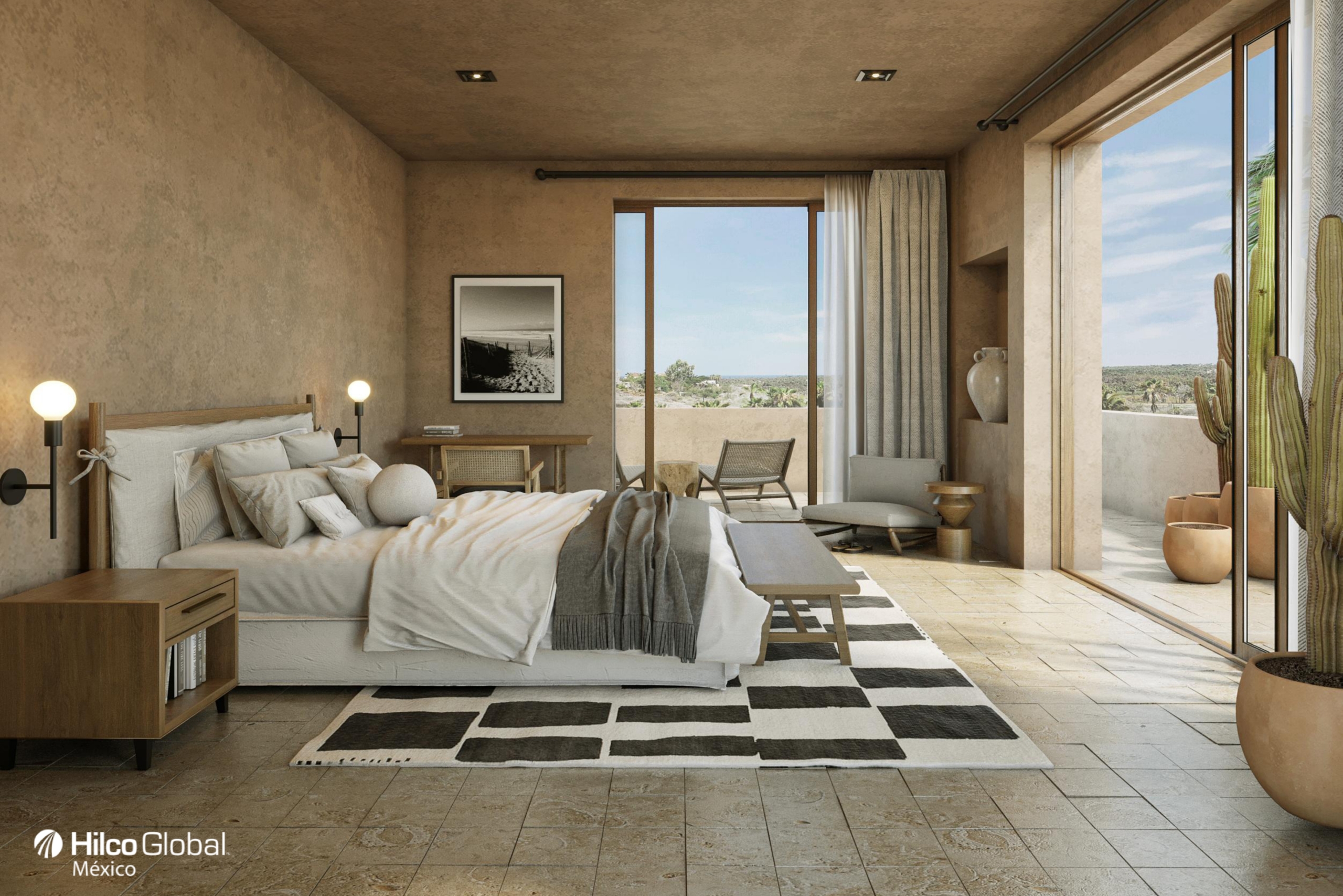 • Recámara principal con vestidor, baño privado y vistas al complejo